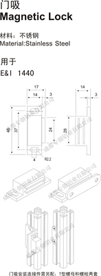 裝飾件、門吸安裝連接件需另配:T型螺母和螺栓兩套。